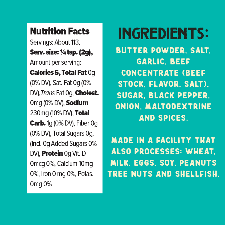 Take your everyday + + up two levels. My Salt-Pepper-Garlic-Butter Seasoning/Rub goes with pretty much whatever you're eating. Beef? Yep. Chicken?